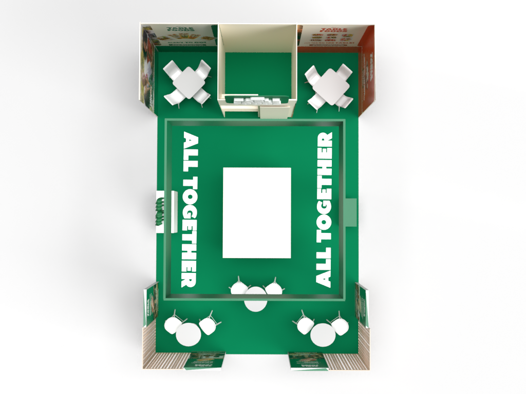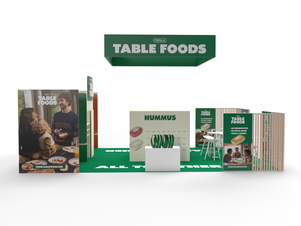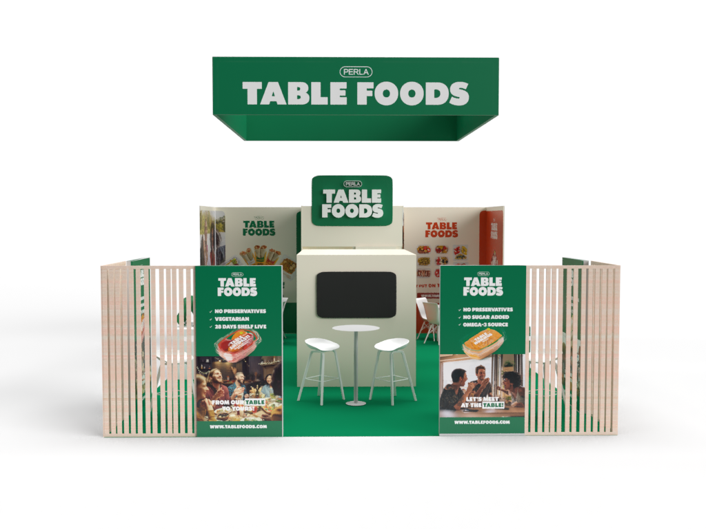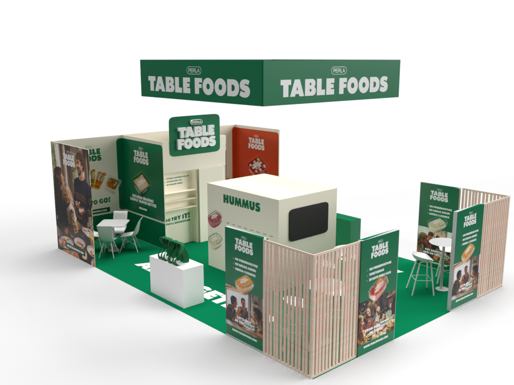 Projekt stoiska zakładał zaprojektowanie układu z wzięciem pod uwagę głównych ścieżek komunikacyjnych na targach tak aby widoczność stoiska i produktów była jak najlepsza.